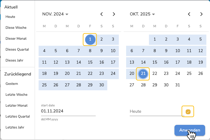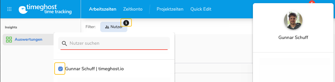 2 | Für Admins + Supervisor: Wähle im Nutzerfilter deinen eigenen Namen aus. |