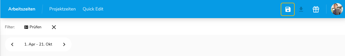 5 | Klicke oben rechts das Speichern-icon und benenne die Ansicht, z. B. „Mein Zeitkonto“. |