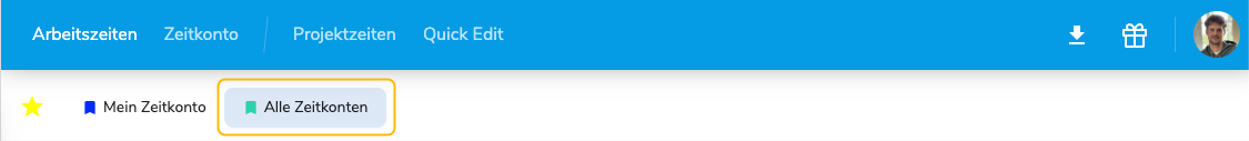 6 | Die erstellte Ansicht wird dir nun als Favorit oben angepinnt im 'Arbeitzeiten-Reiter angezeigt und kann von dort jederzeit geöffnet werden.![]() |